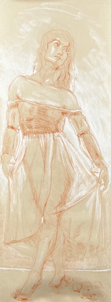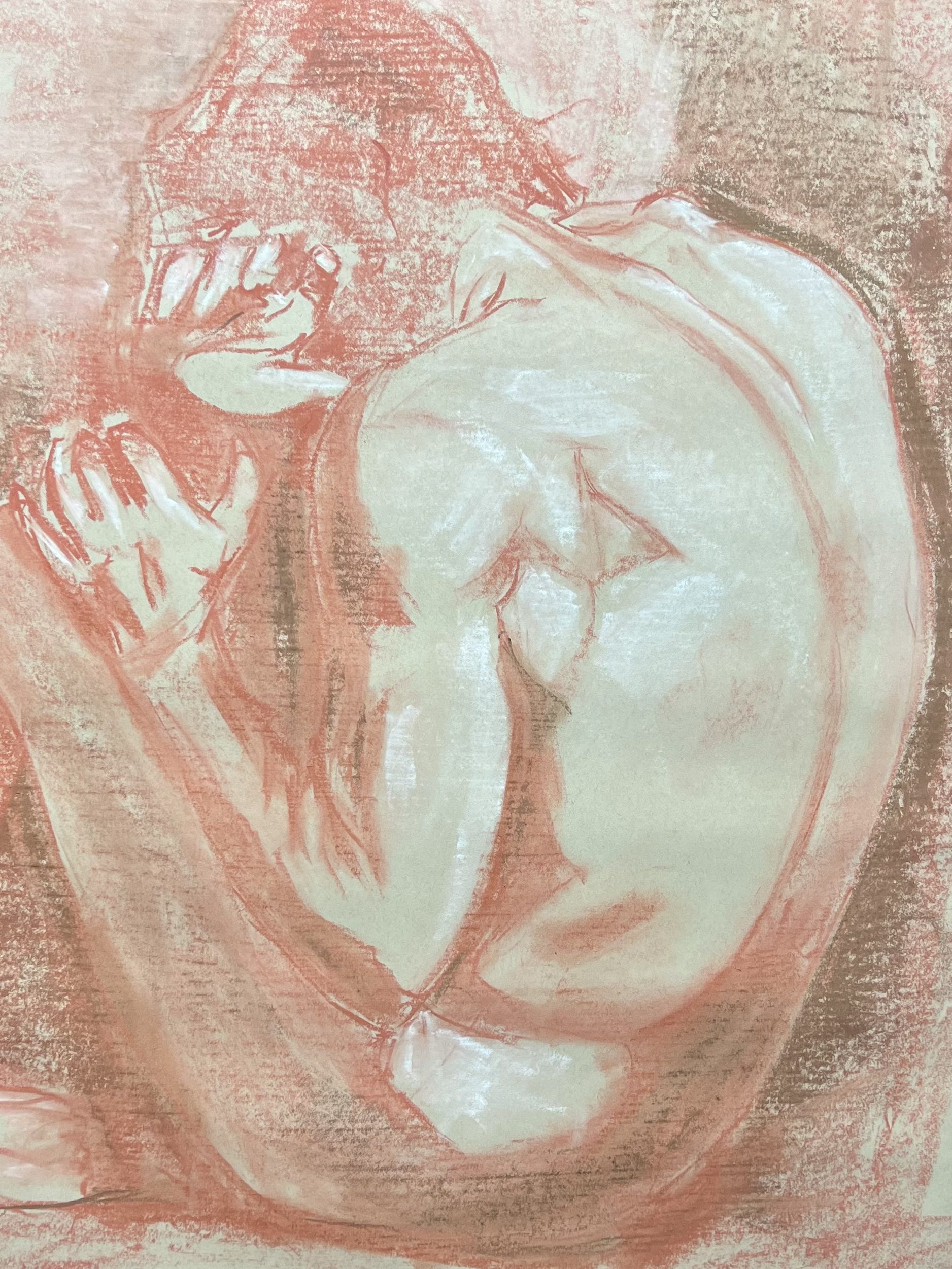 2024, WIP, Red Pencil/White Chalk on Toned Paper